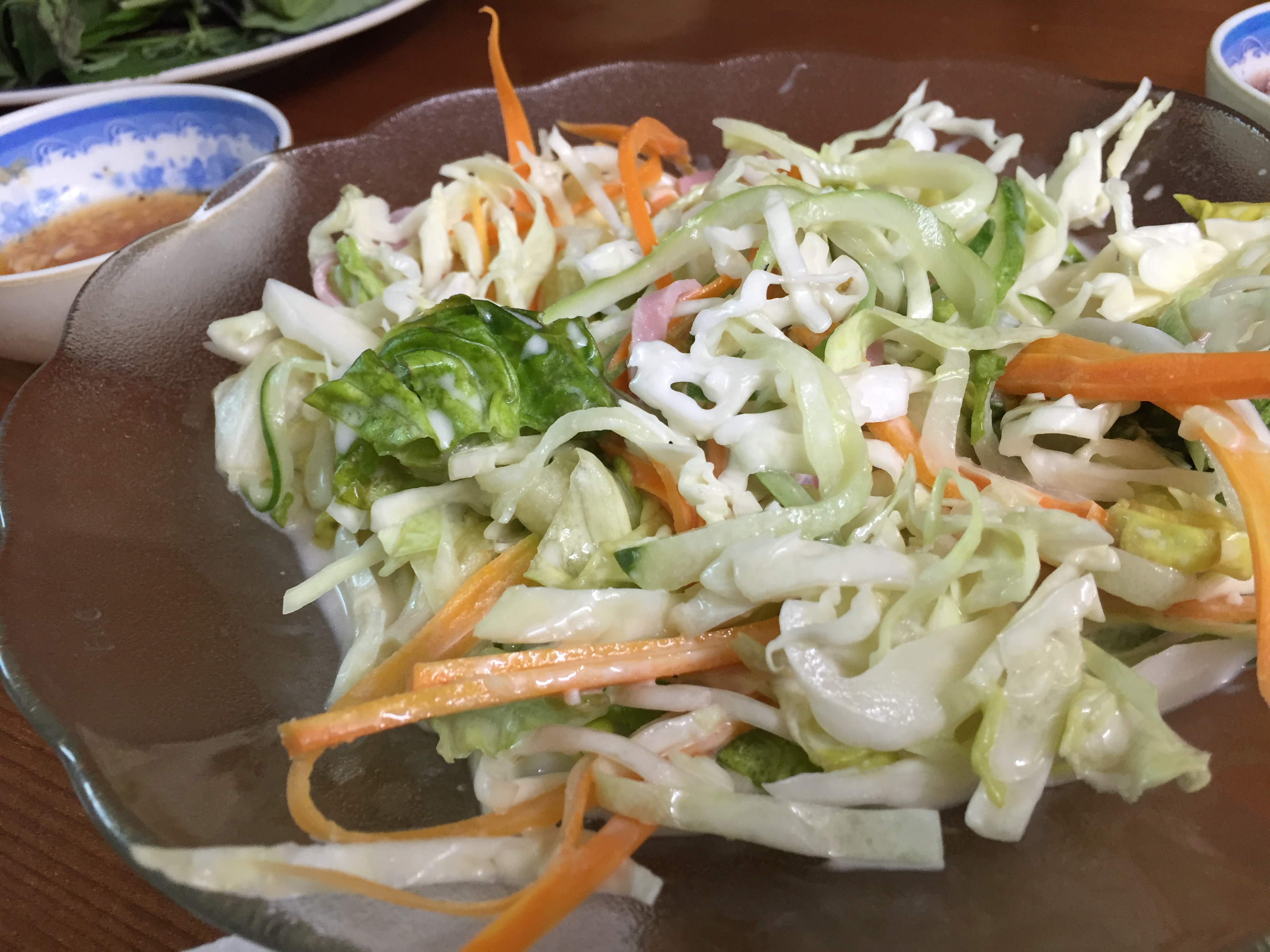 サラダは、マヨネーズ味とスープに野菜が沢山。