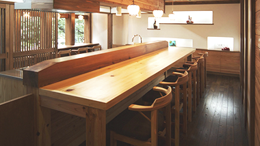 The building is made of Tenryu's "Shingetsu" which is a kind of trees from one of the most famous Japanese sacred spots.