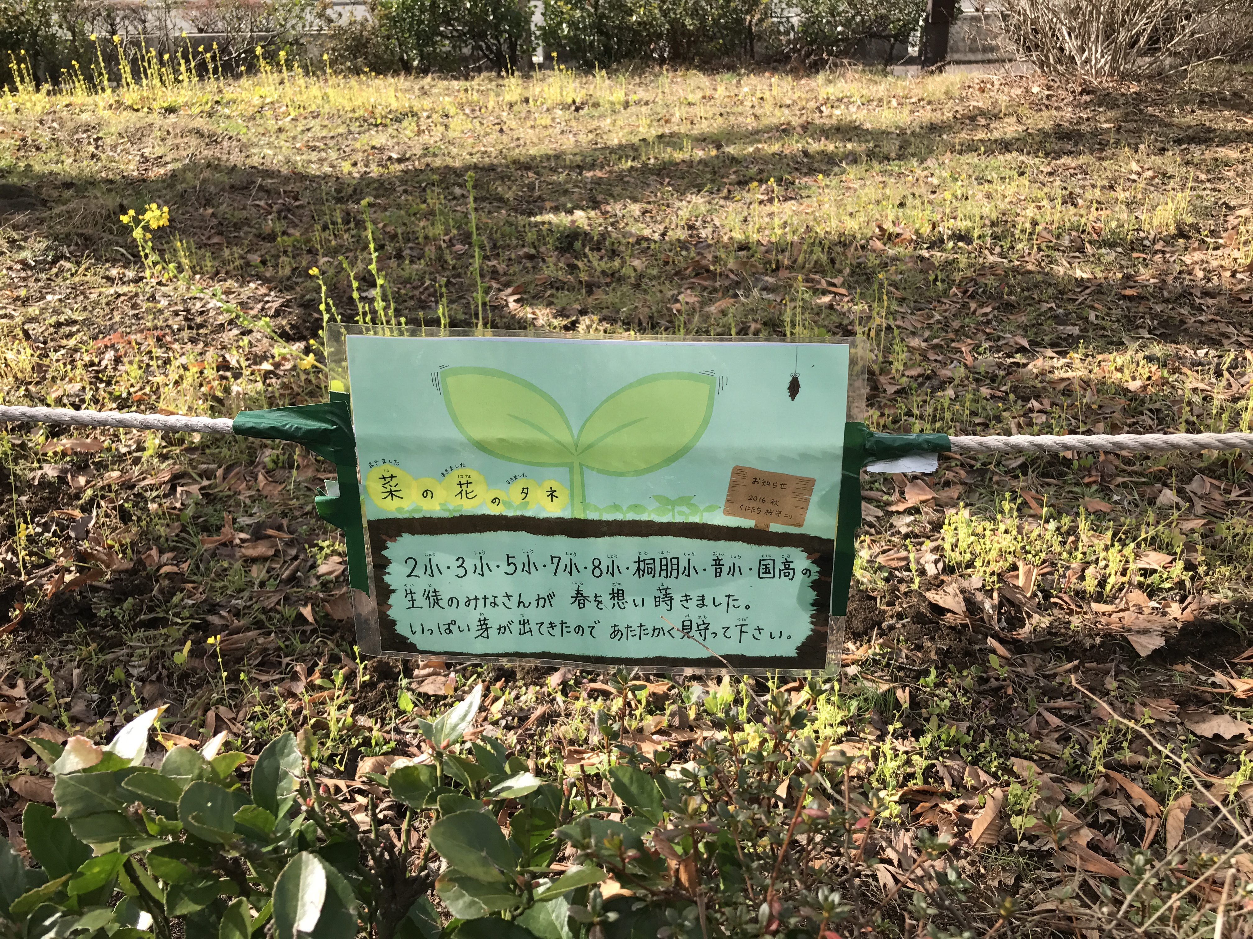 桜の根を守ろうということでまかれた菜の花の調査です。